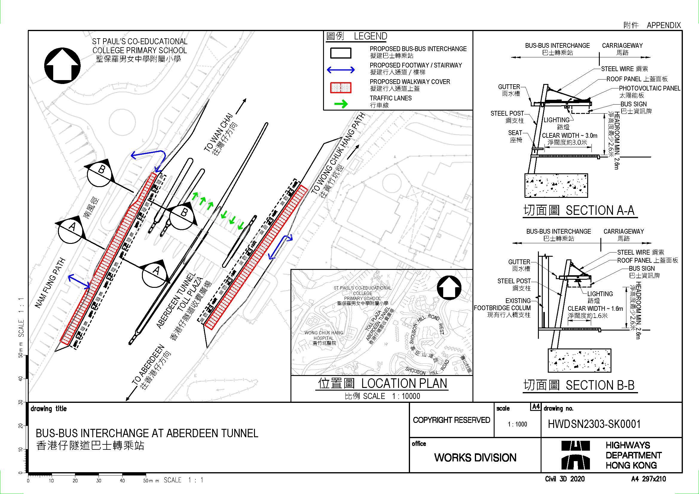 | Contract Title | Construction of Bus-Bus Interchange at Aberdeen Tunnel, Walkway Covers at Central & Western District and Kwai Tsing District (Remaining Works) and Footbridge across Tsui Ping Road |
