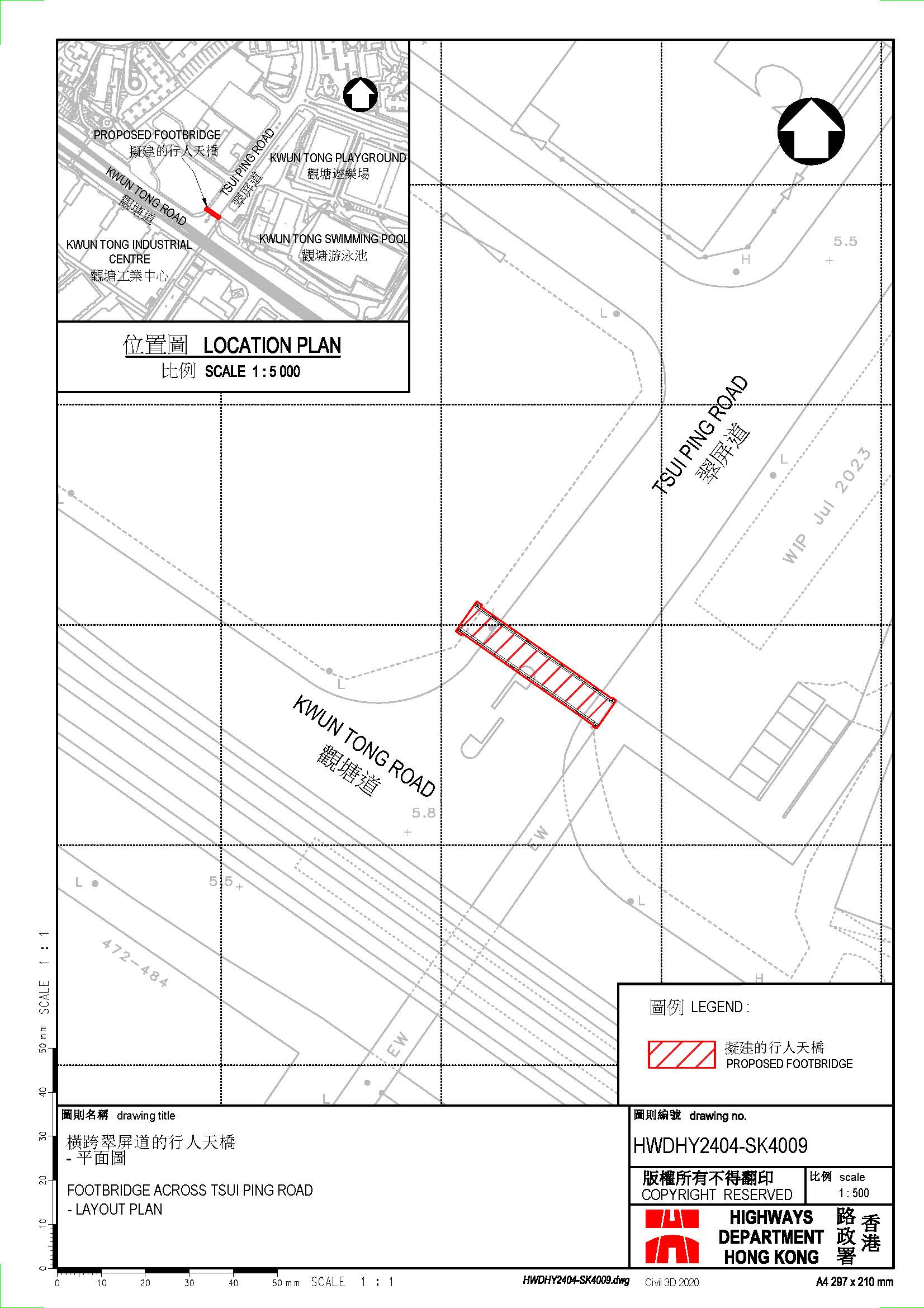 工程旨在兴建一条横跨翠屏道的行人天桥,连接现有行人天桥编号KF90和工务计划项目第3193GK号观塘综合发展项目下拟建的高架行人平台。